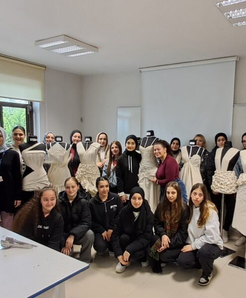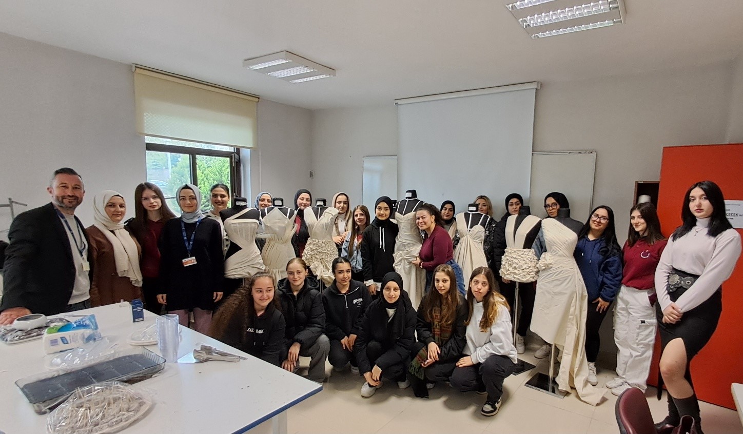 Üniversitemiz Moda Tasarımı Programı’nın Toplumsal Katkı Faaliyeti kapsamında düzenlediği, Trabzon Borsa İstanbul Kız Mesleki ve Teknik Anadolu Lisesi Moda Tasarımı Bölümü öğrencilerinin katılımıyla “Drapaj Tekniği ile Deneysel Tasarım Workshop” Etkinliği 15 Mayıs 2025 tarihinde gerçekleştirilmiştir.
